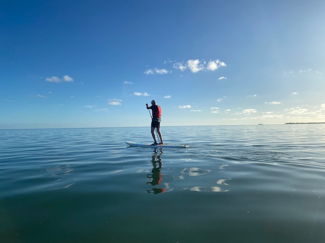 Once we got really close and could see a small hull entrance about half the size of the attic stairs hole you probably stored your Christmas decorations in as a child, the odor emanating from the boat smelled like a dank alleyway of the homeless in San Francisco or London, a combination of urine, hidden feces and decay. There was bird guana on the side, but that is uric acid and has a different odor than mammal urine and feces. I backed away. The mystery was solved, but as we paddeled back, I wondered how it got there. Who ran it aground offshore and why was it still there? Why did it stink so badly? Would I make it all the way back without falling in and potentially falling prey to the hammerhead’s mother? Musings, nothing more. Musings of a month long tourist in the Keys, staying in a gorgeously appointed home on the ocean, equipped with our own paddleboards and kayaks.