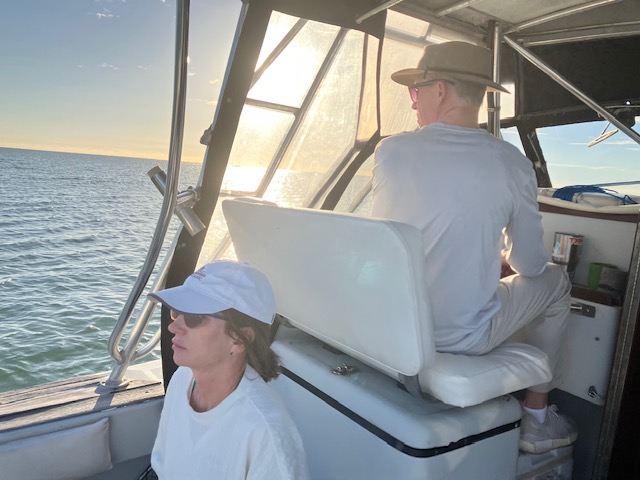 George is like the sailor in The Old Man and The Sea, few words, but they were wise, and an absolute magician on the boat. Need a hook ’cause a big fish hooked got taken by a bigger fish and George had a new one on before you knew it. Need a weight on your line, his arthritic but deft fingers had it on and you were casting again faster than a Grady DIck catch and shoot. When my Australian Akubra hat went flying and overboard for the second time, George wasn’t making a fuss. I conisidered jumping in to save it. I mean, our friends brought it back from Australia when we still lived in England and I loved that thing, but as I waited for George to maybe put the boat in reverse, he simply said, “That’s still floating.” I wanted to cry out, “Wilson! I’m sorry. I’m sorry Wilson,” but I really felt like I needed to be a man in front of George, so I mirrored his silence.