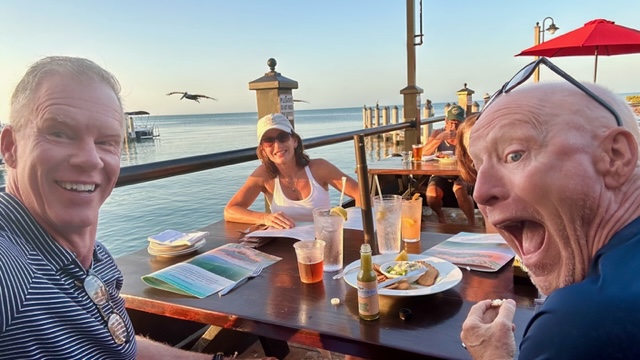 So that is Dean, normal Dean, but there is another Dean, “Nitro Dean.” Dean does not drink coffee like I do. As I’ve described, I love coffee. Dean occasionally imbibes. But down here, within walking distance of our oceanfront villa, there is a Dunkin Donuts conjoined with a convenience store/gas station. Early in this trip, Dean investigated and then procured, a $4.28 cup of cold-brewed nitro coffee. The first day of this acquisition, he consumed the entire 8 oz cup and Nitro Dean emerged. On this particular lazy day, after pickleball (for Les) and tennis (for Lisa), after the walk on the beach with Mully and Lily, when the afternoon breeze caresses and kisses your skin blowing away the heat of the Keys afternoon sun, when books become naps, Nitro Dean emerged and according to the ladies, “He would not shut up!” He was literally babbling about this and that – remember this is a man of concentrated words and brief, but thoughtful comments.