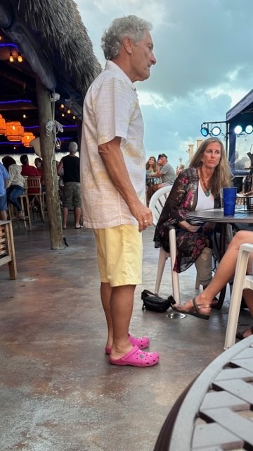 This story involves another fresh water conch (if you’re born in the Keys, you’re called a Conch, but if you live here for seven years, you become a freshwater conch) and he goes by the name of Tom. Tom is of Portuguese origin (so he tells me) by way of Boston. Les and I met Tom on the pickleball courts, where he is not only a regular, but also the past Commodore of the yacht club and at 75, speaks with the authority you’d expect from a Bostonian. He has one of the dryest senses of humor on the court you could expect, but off the court there are endless true tales of Uncle Manny that are side-splitters. According to legend, Tom got into some hot water as Commodore of the boating and yacht club by telling some jokes one member described as sexist, so now he only tells true stories of his Uncle Manny, who can be forgiven for being a little sexist as he’s in his late 80’s. Tom also invented the Key Colony Shuffle, which has been practiced widely in the Key Colony for more than 13 years. Yes, Tom is legend for his jokes and his dancing.
